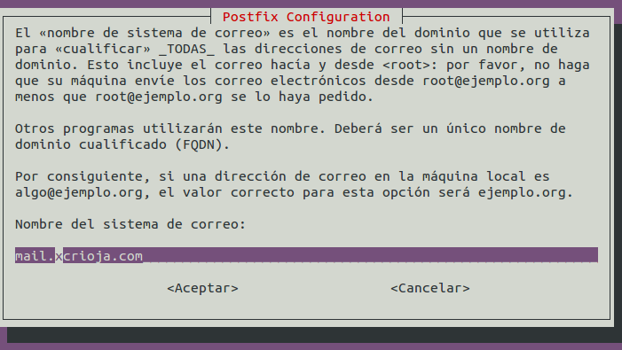 [textoscrollh]sudo apt-get install postfix mailutils libsasl2-2 ca-certificates libsasl2-modules[/textoscrollh]