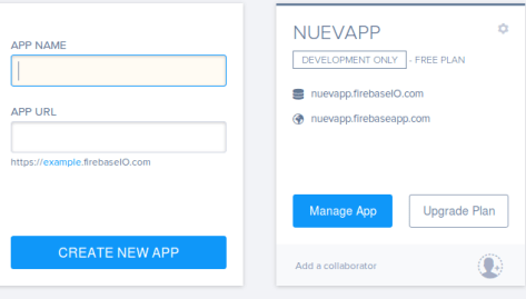 En el navegador tenemos que confirmar y nos lleva a la página de bienvenida, le damos nombre a la aplicación (la llamo nuevapp) y entramos en el escritorio de Firebase.