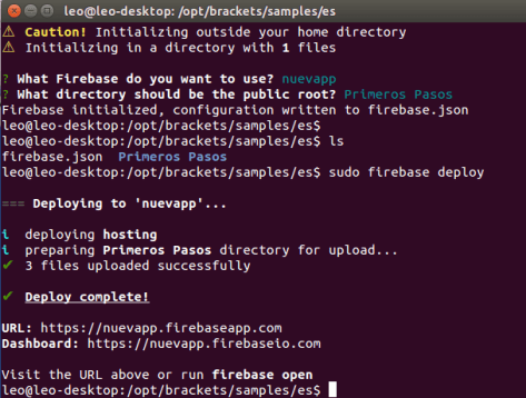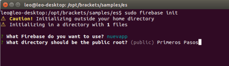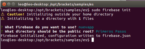 Nos pide el directorio que queremos subir (en mi caso ‘Primeros Pasos’), lo escribimos y nos crea el archivo firebase.json
