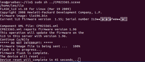 Si tenemos acceso a la consola iLO podemos actualizar el firmware desde allí. Descargamos el archivo .scexe . y ejecutamos el archivo con sh y lo desempaquetamos en una carpeta.