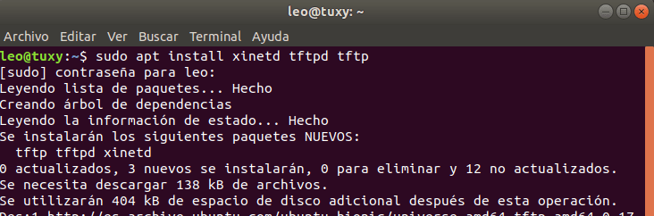Xinetd es un servidor TFTP que uso para hacer las copias de seguridad de los dispositivos Cisco en mi Ubuntu. Instalar desde línea de comandos con