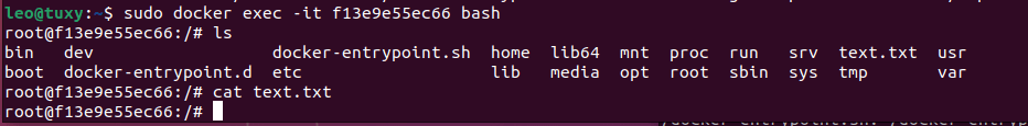 Entramos en la imagen con docker exec -it y vemos que el contenido de nuestro archivo esta vacío