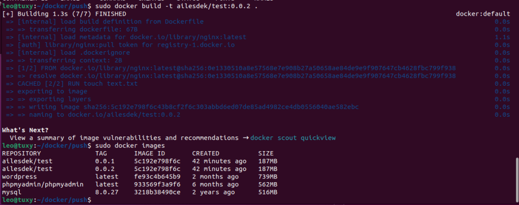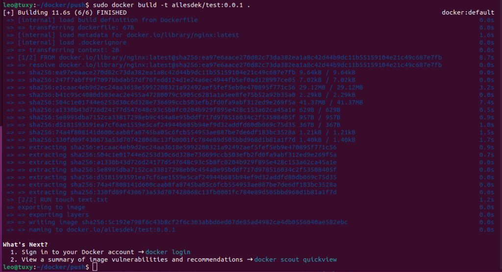 Creamos la imagen con docker build y añadimos una etiqueta después del nombre del repositorio, en este caso 0.0.1