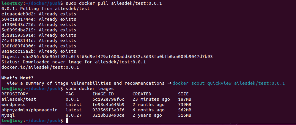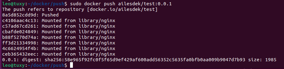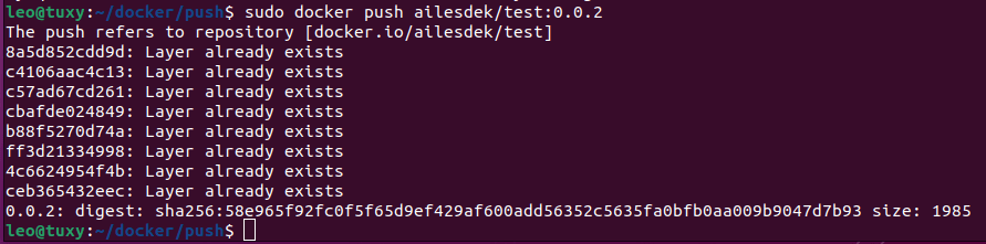 Subimos la imagen a nuestro repositorio de Docker Hub con docker push