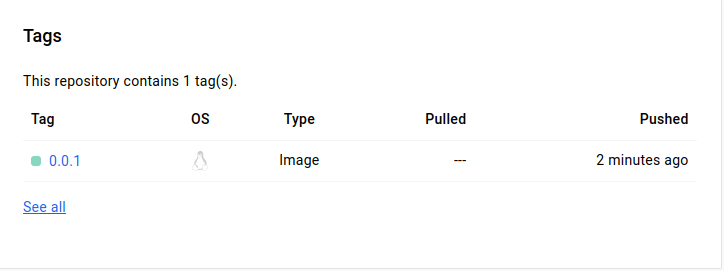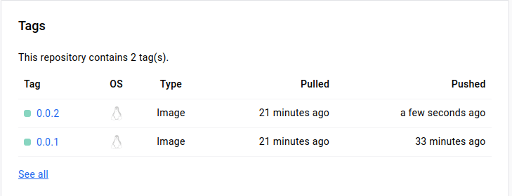 Si vas a la página de Docker Hub en el apartado Tags veras la imagen subida