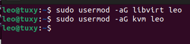Añadir el usuario que va a ejecutar las máquinas virtuales a los grupos libvirt y kvm y reiniciar el sistema.