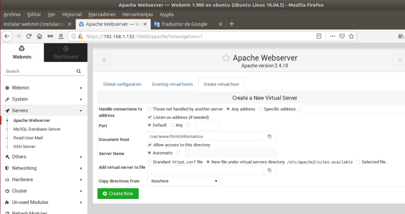 apache-webmin 3 julio, 2020 1209 × 639 apache-webmin Configurar VirtualHost desde Webmin Configurar VirtualHost desde Webmin