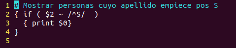 Archivo apellidos con awk 5 julio, 2020 479 × 98 Archivo apellidos con awk Archivo de ejemplo para listar todas las personas cuyo segundo apellido comience por S
