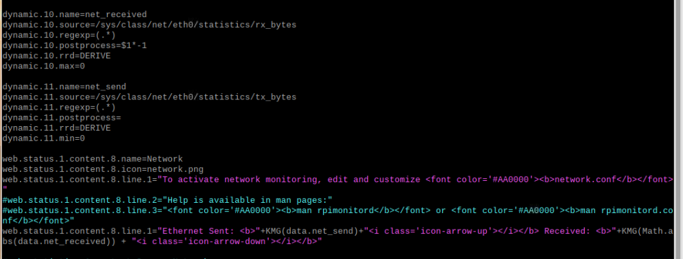 Para activar Network ir a /etc/rpimonitor/template y modificar el archivo network.conf
