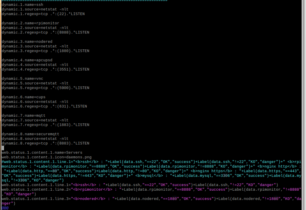 Los servicios se configuran en el archivo /etc/rpimonitor/template/services.conf
