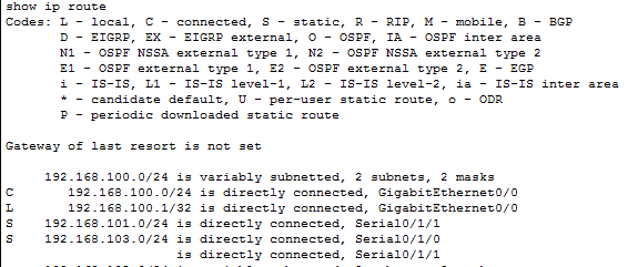 Configurar ruta estática ipv4 en router Cisco 7 julio, 2020 566 × 241 Configurar ruta estática ipv4 en router Cisco Comando show ip route