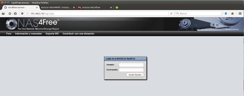 Instalar NAS4FREE 7 julio, 2020 800 × 317 Instalar NAS4FREE Para configurar NAS4Free entramos desde el navegador con la IP asignada