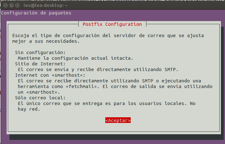 Vamos a instalar postfix en Ubuntu 14.04 Server, pero solamente para correo local entre usuarios.