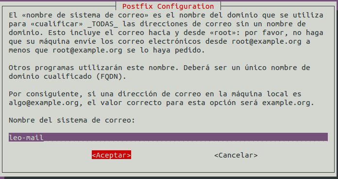 [textoscrollh]sudo apt-get install postfix mailutils libsasl2-2 ca-certificates libsasl2-modules[/textoscrollh]