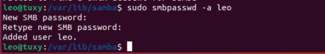 Para establecer una contraseña para el usuario de Samba lo hacemos con el comando smbpasswd