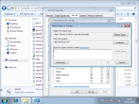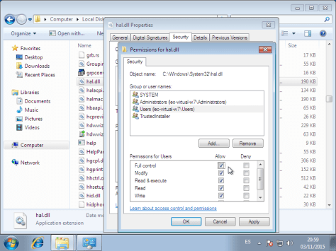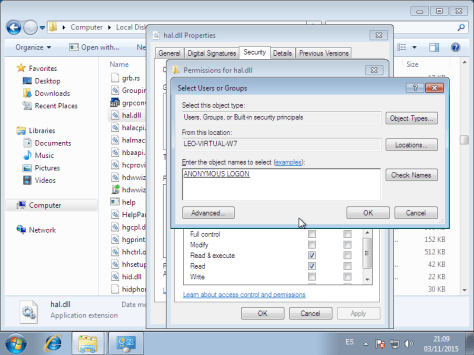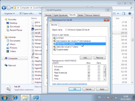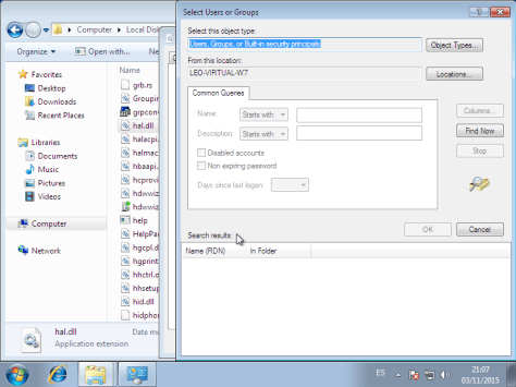 Permisos de archivos en Windows 7
