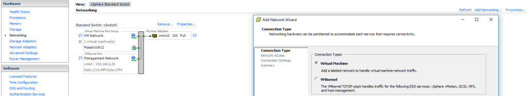 Virtualizacion Añadir nueva interfaz de red a Host y MV Galería 22 abril, 2016 Leopoldo Virosta Ruiz El asunto es que hemos instalado ESXi y solo había una interfaz de red activa por lo que solo aparece ahora esa única interfaz. Quiero utilizar la otra que tiene el server.
