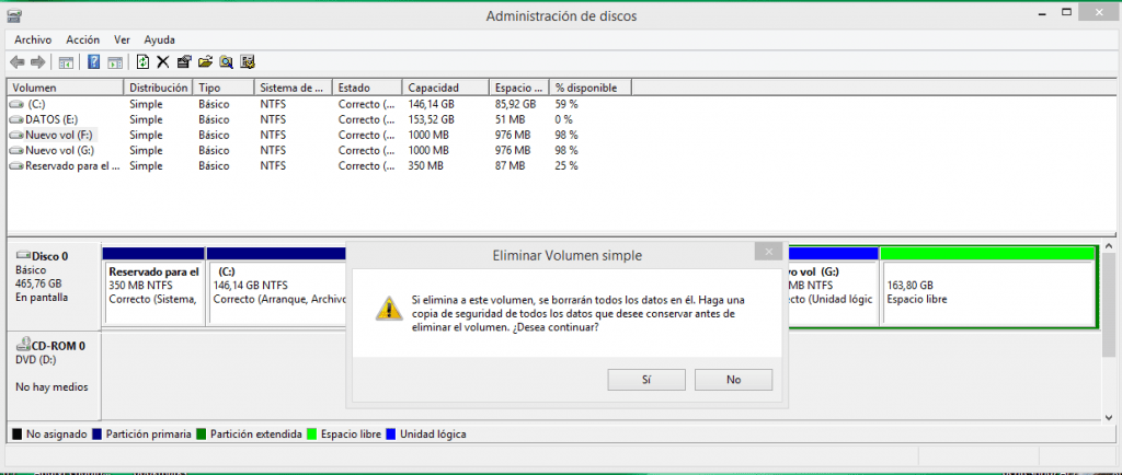 Eliminar particiones en Windows 8