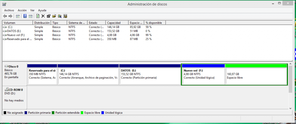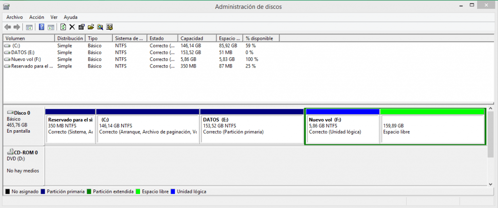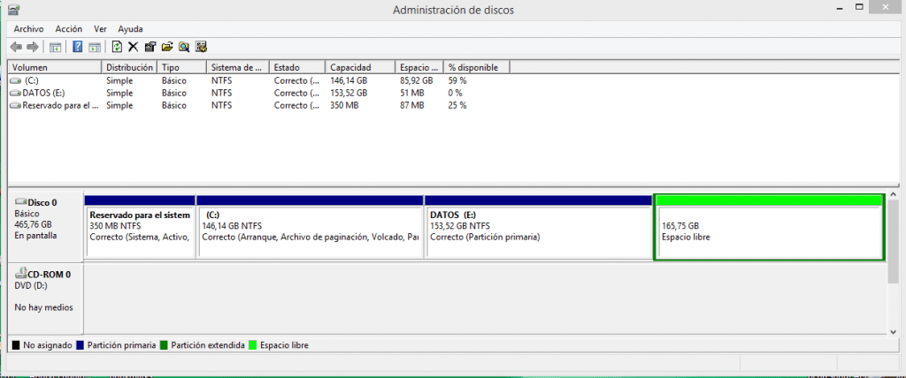 Aumentar particiones en Windows 8