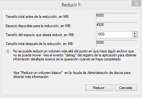 Reducir particiones en Windows 8