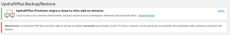 updraftplus_curl 3 julio, 2020 1265 × 197 updraftplus_curl UpdraftPlus avisa de que falta el módulo CURL en PHP. Instalar el paquete y reiniciar apache.