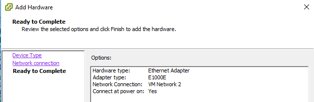 Añadir nueva interfaz de red a Host y MV 7 julio, 2020 638 × 207 Añadir nueva interfaz de red a Host y MV La etiquetamos y elegimos el tipo, finalmente nos muestra un resumen